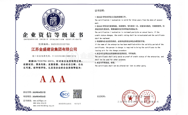 • 2007年江蘇省質量信得過安全穩定施工企業